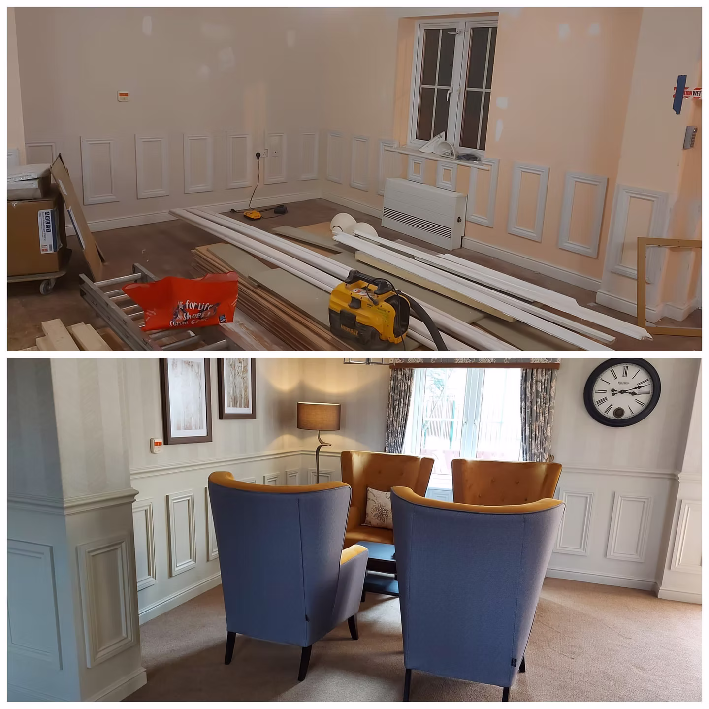 Full refurbishment of a 17-bedroom care home, including all assisted bathrooms, en-suites, communal lounges, dining areas, and corridors. The project transformed the entire home into a warm, accessible, and resident-focused environment that supports high-quality care and daily comfort.